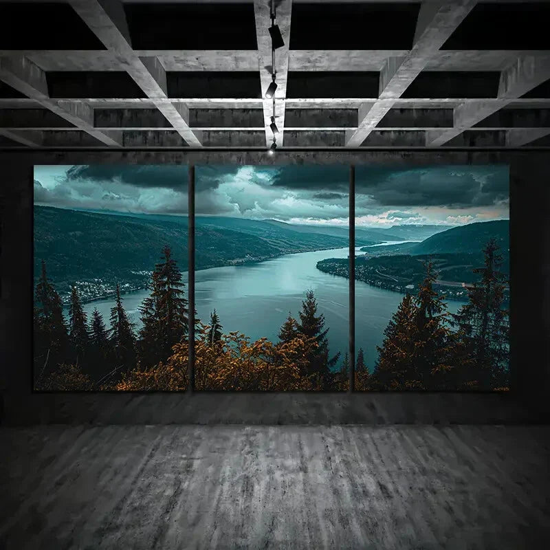 3pcs Scenic Lake Mountain Palm Trees Metal Print Ready to Hang Art