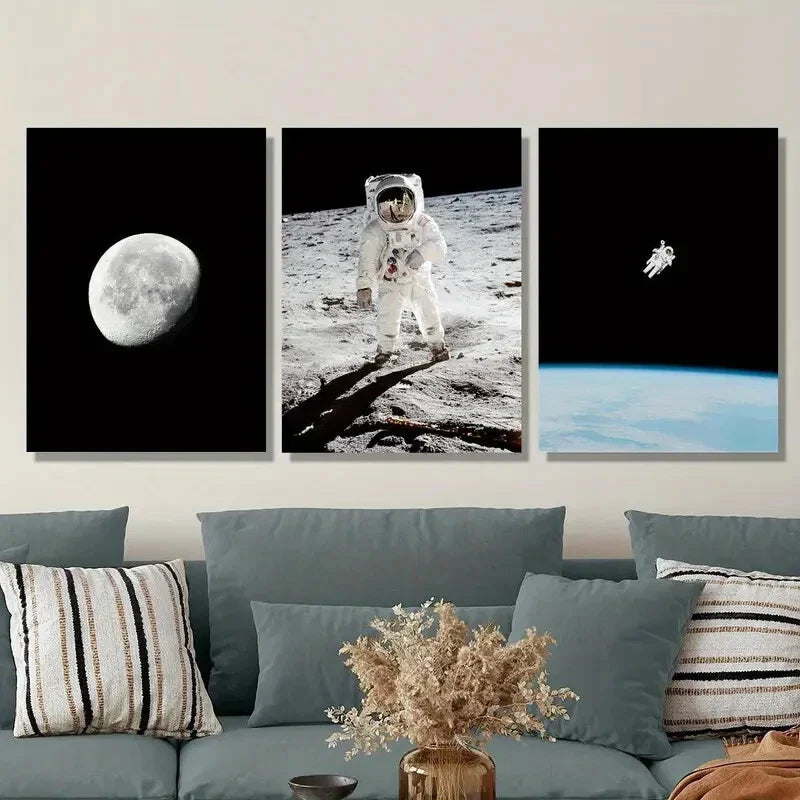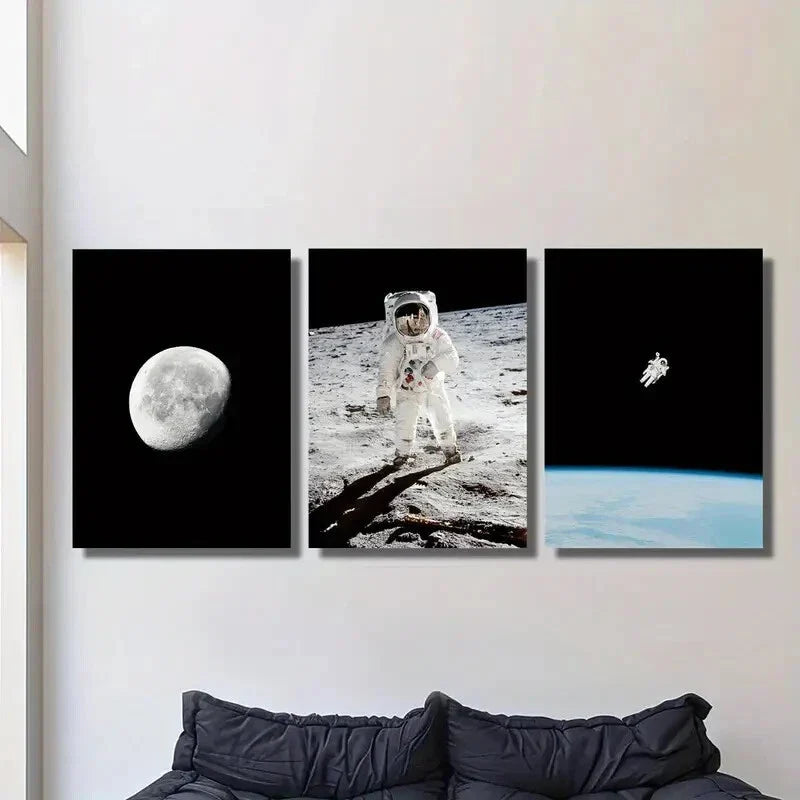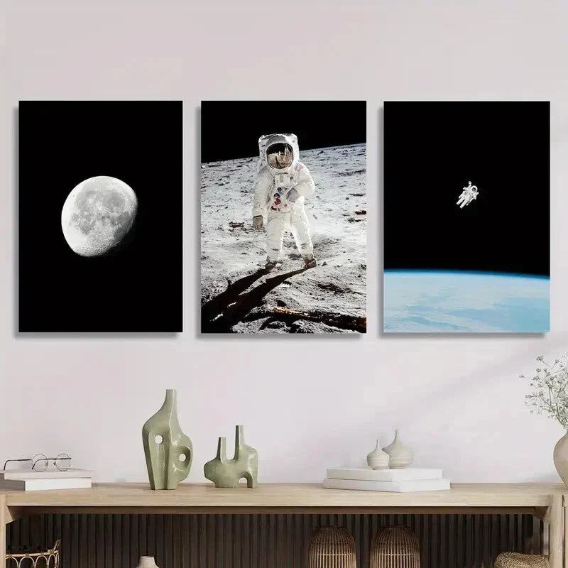 3pcs Science Fiction Themed Ink Painting ,Metal Print Ready to Hang Art