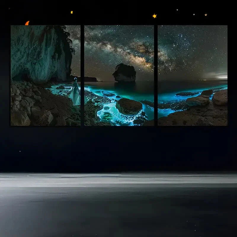 3pcs Sea Blue Water Black Stones Metal Print Ready to Hang Art