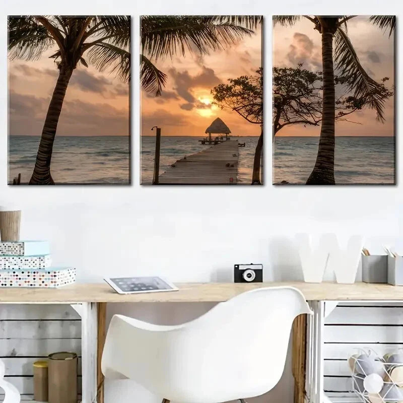 3pcs Sea Bridge Ocean Sea Sea Sunset Landscape Metal Print Ready to Hang Art