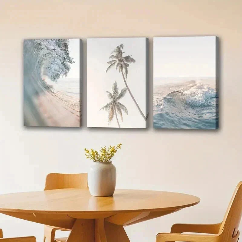 3pcs Sea Waves and Palm Tree Prints Wall Art Set Canvas Framed 40x60cm - High Quality Print 100% Australian Made Wall Canvas Ready to Hang