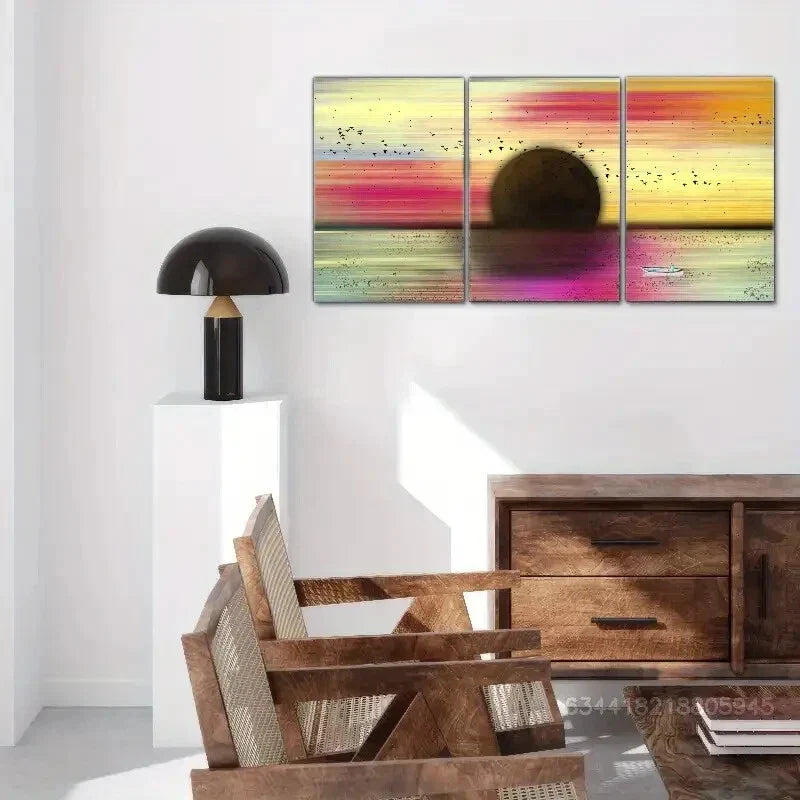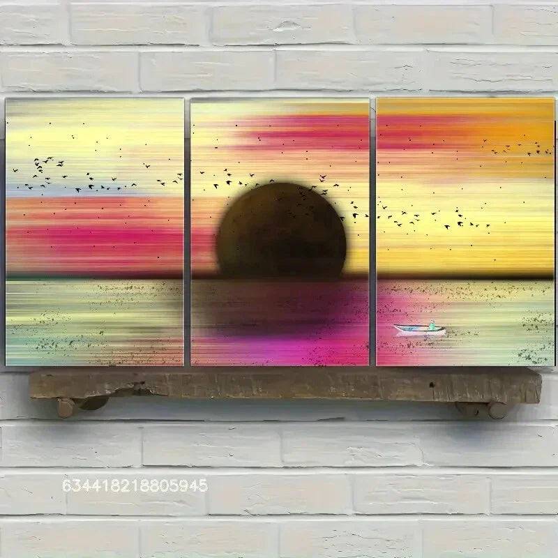 3pcs , Seascape, sea, boat in the sea landscape Metal Print Ready to Hang Art