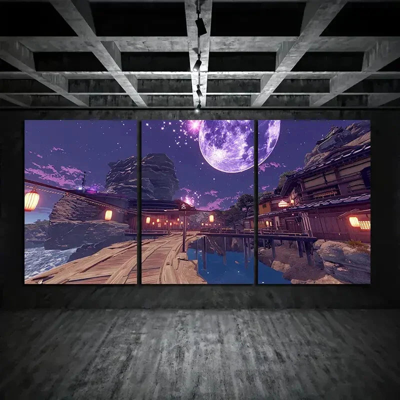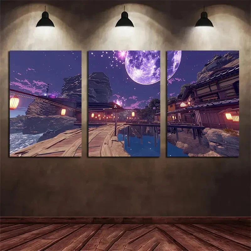 3pcs Seaside Dreamy Cityscape Metal Print Ready to Hang Art