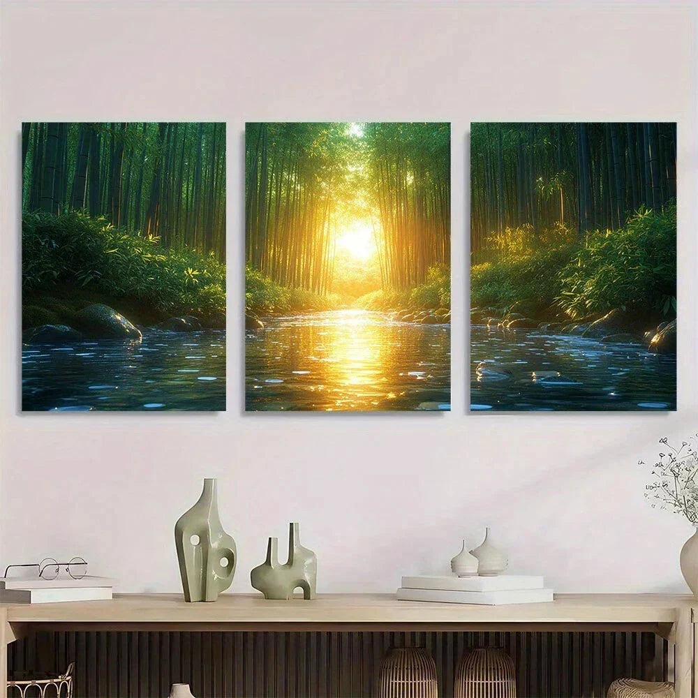 3pcs Serene Bamboo Forest Ethereal Light Metal Print Ready to Hang Art
