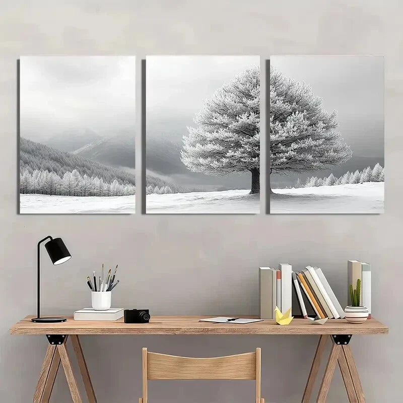 3pcs Serene Black and White Winter Snow Covered Metal Print Ready to Hang Art
