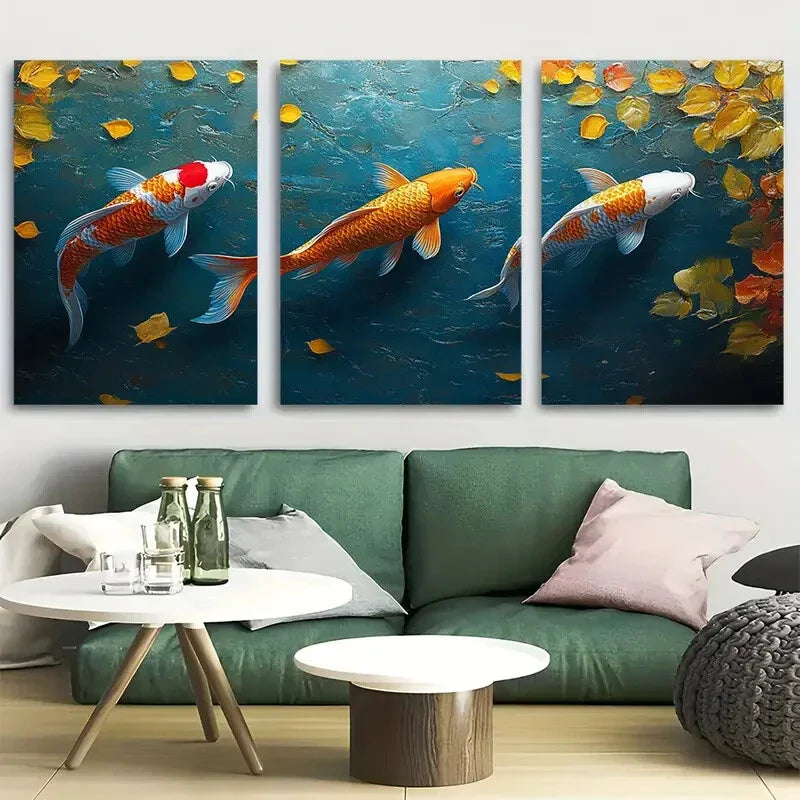 3pcs Serene Koi Fish Abstract Aquatic Design Metal Print Ready to Hang Art
