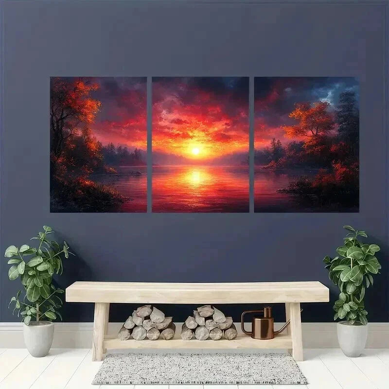 3pcs Serene Lake Sunset & Forest Scenery Wall Art Set Canvas Framed 40x60cm - High Quality Print 100% Australian Made Wall Canvas Ready to Hang