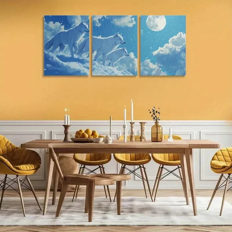 3pcs Serene Moonlit Sky with Howling Wolves Metal Print Ready to Hang Art