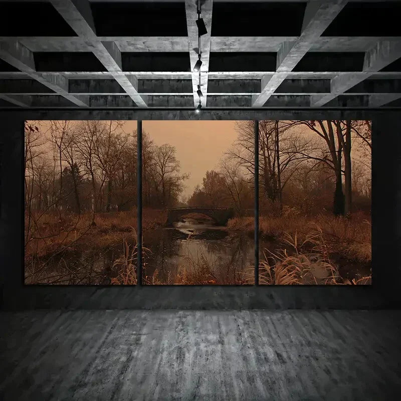 3pcs Serene River Small Bridge Scenic Metal Print Ready to Hang Art