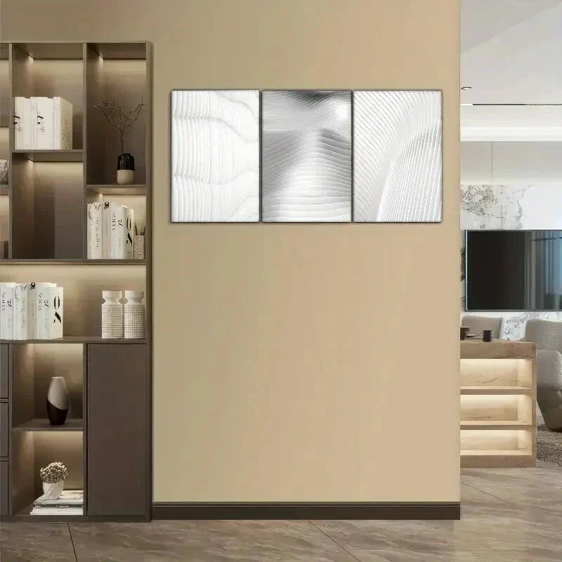 3pcs Set of Elegant Framed Abstract Metal Print Ready to Hang Art