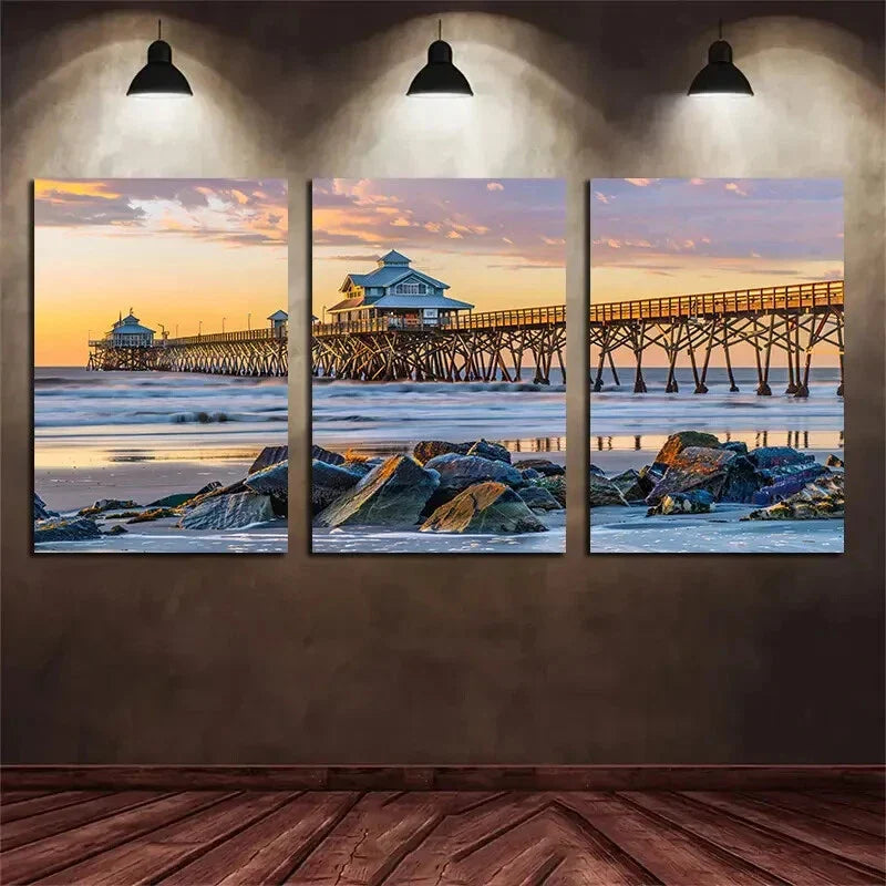 3pcs Set of Long Dock by the Sea Metal Print Ready to Hang Art