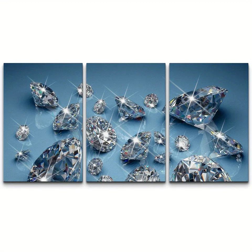 3pcs Shiny Large & Small Diamonds Geometric Metal Print Ready to Hang Art