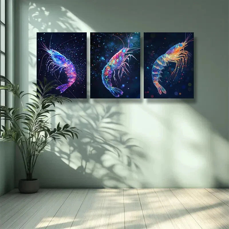 3pcs Shrimp, dream Art Painting Metal Print Ready to Hang Art