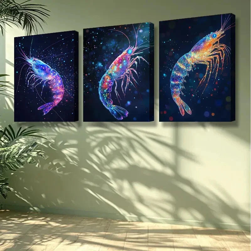 3pcs Shrimp, dream Cosmic Galaxy Wall Art Set Canvas Framed 40x60cm -High Quality Print 100% Australian Made Wall Canvas Ready to Hang