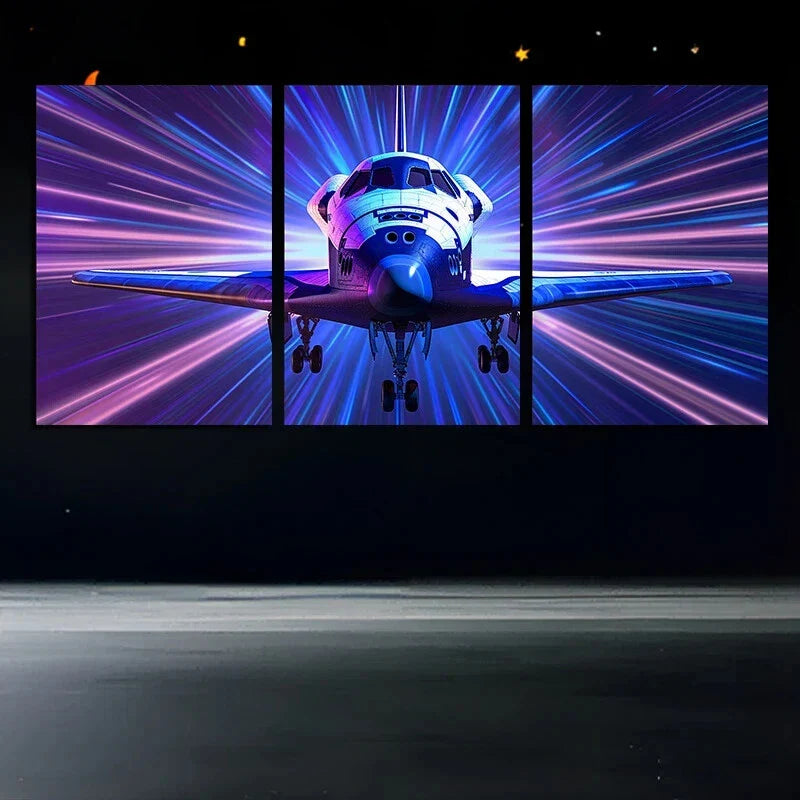 3pcs Shuttle Machine Purple Themed Metal Print Ready to Hang Art