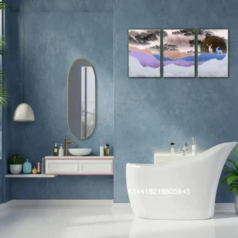 3pcs Sika Deer & Mountain Landscape Metal Print Ready to Hang Art