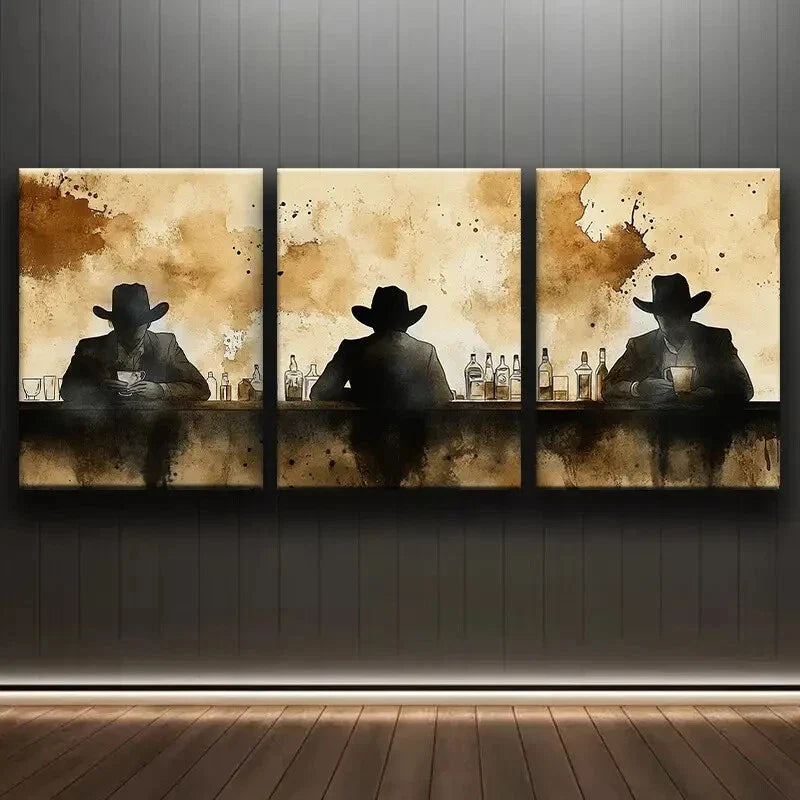 3pcs Silhouettes at Bar Design Alone Darkness Wall Art Set Canvas Framed 40x60cm - High Quality Print 100% Australian Made Wall Canvas Ready to Hang