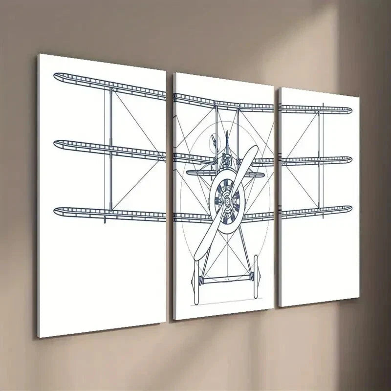 3pcs Simple Airplane Line Wall Art Set Canvas Framed 40x60cm - High Quality Print 100% Australian Made Wall Canvas Ready to Hang