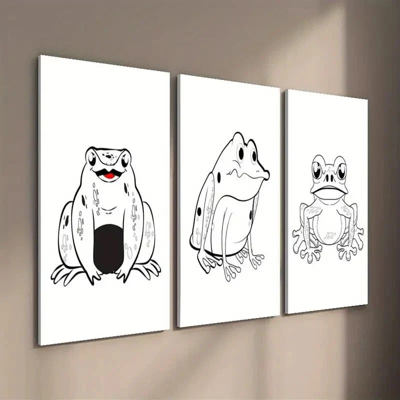 3pcs Simple Japanese Murals Japanese Frogs Wall Art Set Canvas Framed 40x60cm - High Quality Print 100% Australian Made Wall Canvas Ready to Hang
