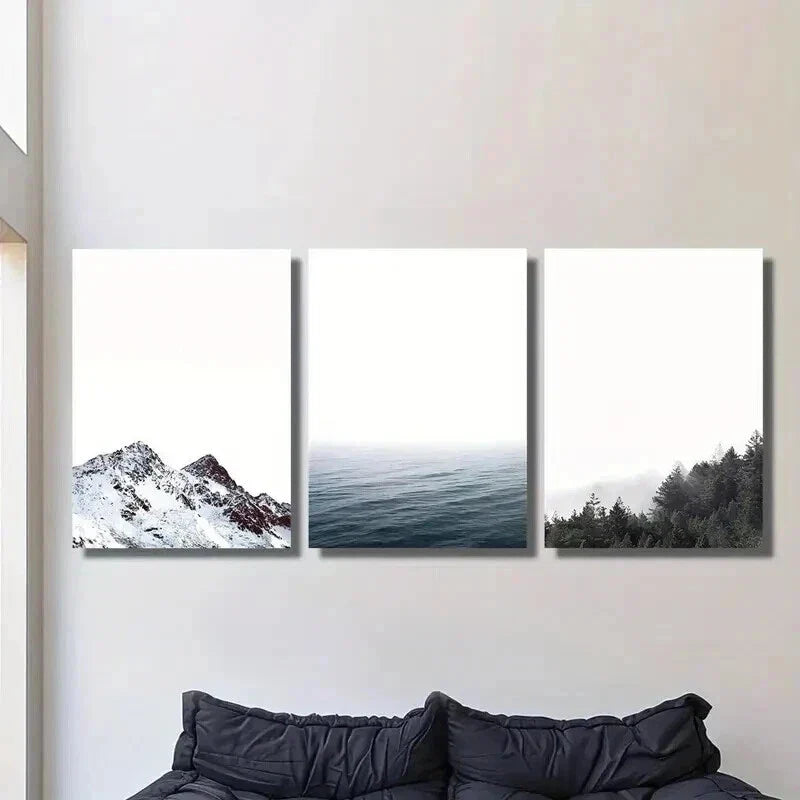 3pcs Simple Nordic Mountain Forest & Ocean Wall Art Set Canvas Framed 40x60cm - High Quality Print 100% Australian Made Wall Canvas Ready to Hang