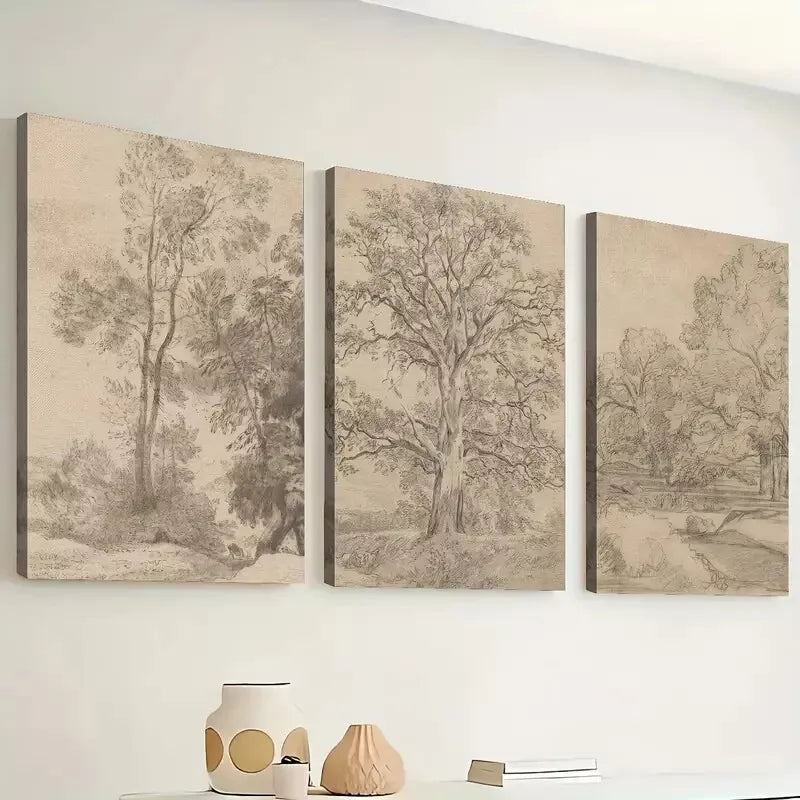 3pcs Simple Style trees, sketch retro Paint Wall Art Set Canvas Framed 40x60cm - High Quality Print 100% Australian Made Wall Canvas Ready to Hang