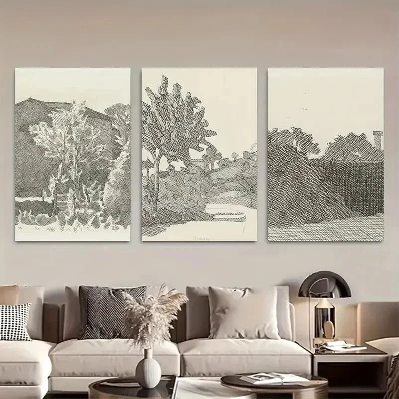 3pcs Sketch Country Landscape by Morandi Metal Print Ready to Hang Art