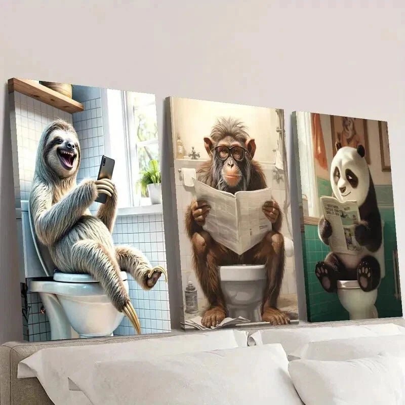 3pcs Sloths Monkeys And Giant Pandas Wall Art Set Canvas Framed 40x60cm - High Quality Print 100% Australian Made Wall Canvas Ready to Hang