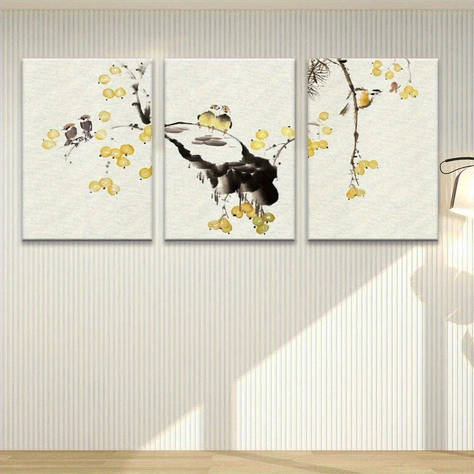 3pcs Small Yellow Fruits on Branches Metal Print Ready to Hang Art