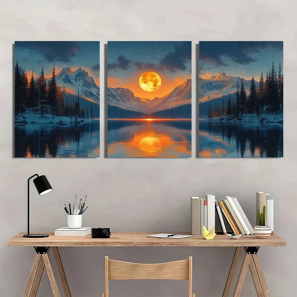 3pcs Snow Capped Mountain at Night Metal Print Ready to Hang Art