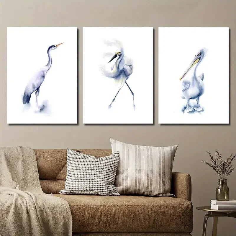 3pcs Snowy Egret Pelican Heron Blue Grey Animal Metal Print Ready to Hang Art