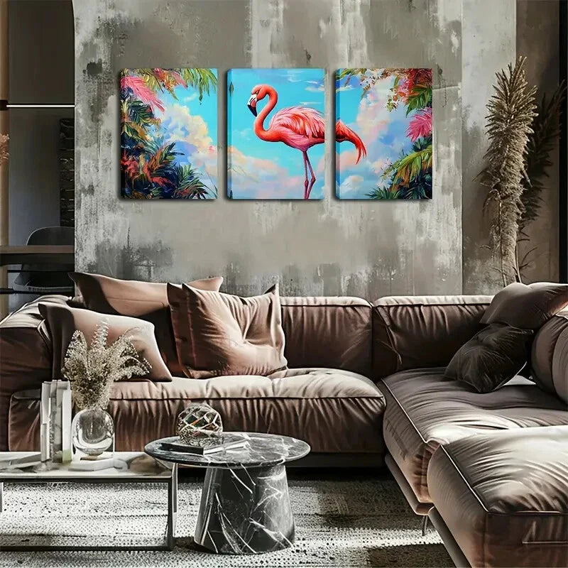 3pcs Soft Blue And Pink Sky Tropical Dream Style Wall Art Set Canvas Framed 40x60cm - High Quality Print 100% Australian Made Wall Canvas Ready to Hang