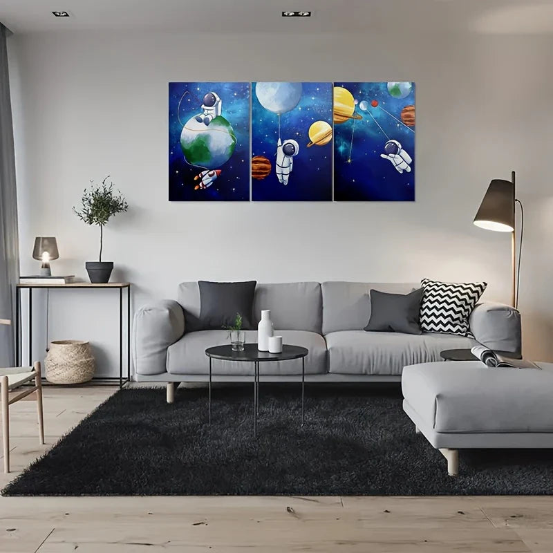 3pcs Space Adventure Astronaut & Planets Painting Metal Print Ready to Hang Art