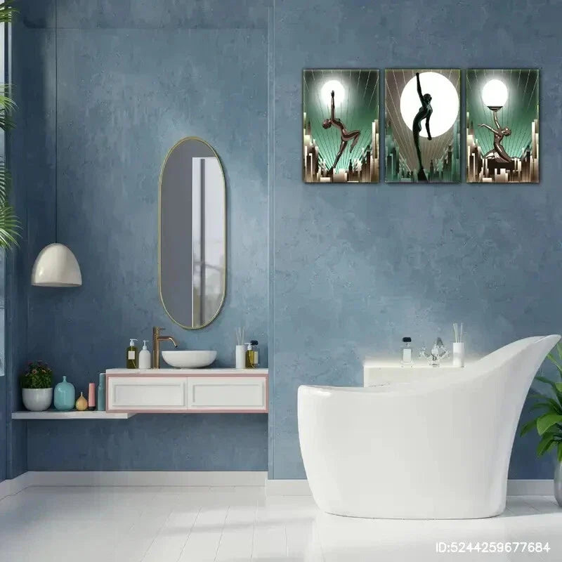 3pcs Space Artistic Sculpture and City Poster Metal Print Ready to Hang Art