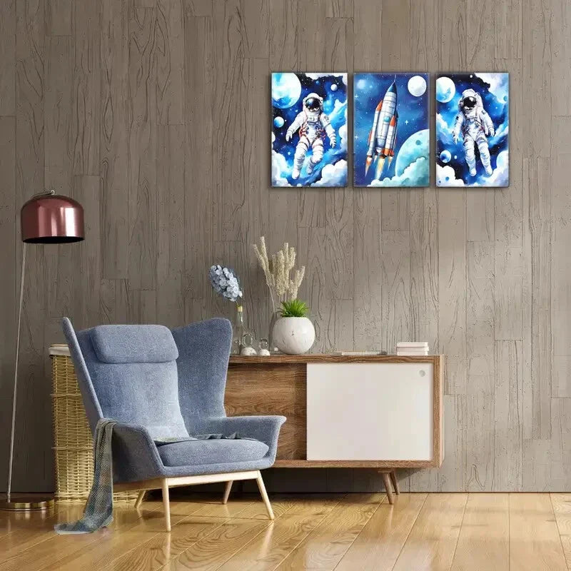 3pcs Space Exploration Astronaut & Rocket Prints Metal Print Ready to Hang Art