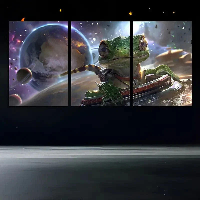 3pcs Space Green Lizard Modern Art Metal Print Ready to Hang Art