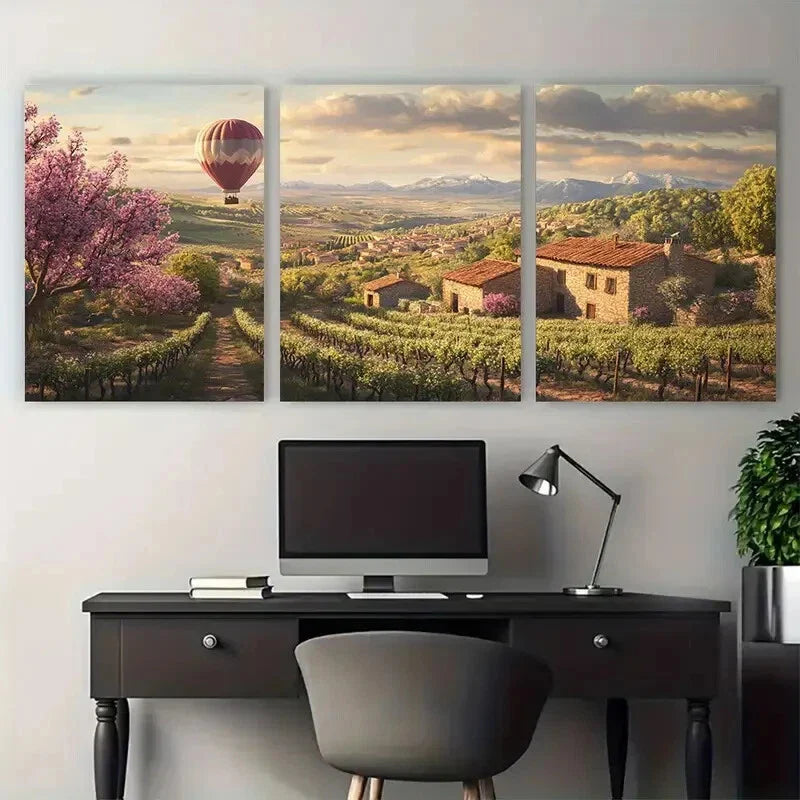 3pcs Spanish Countryside in Spring Vineyards Metal Print Ready to Hang Art