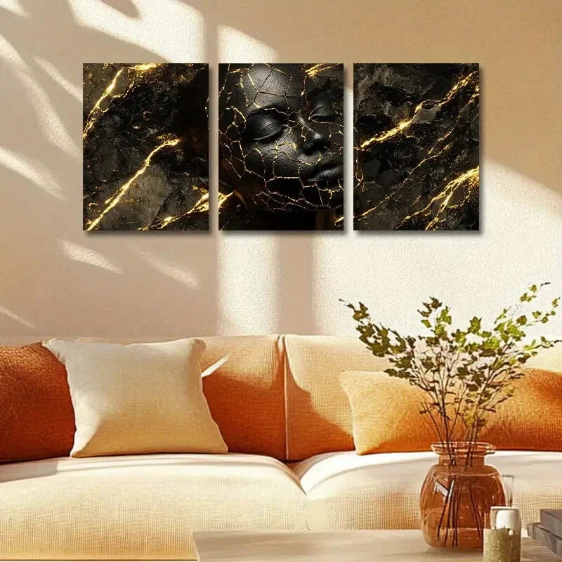 3pcs Split Face with Golden Accents Design Metal Print Ready to Hang Art