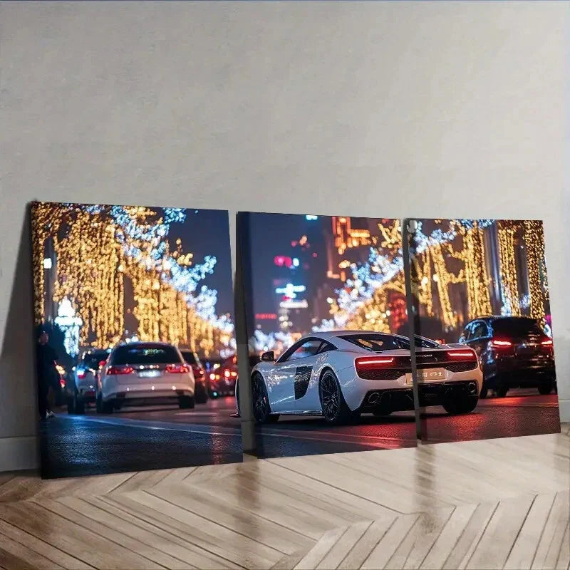 3pcs Sports cars in the city Wall Art Set Canvas Framed 40x60cm - High Quality Print 100% Australian Made Wall Canvas Ready to Hang