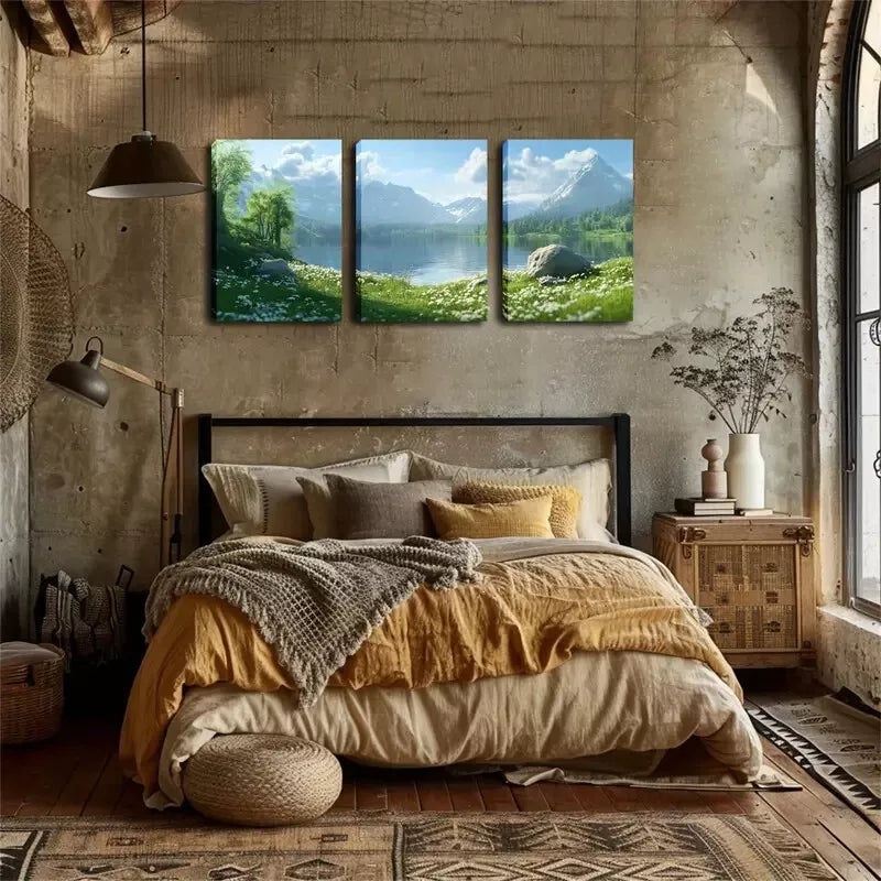 3pcs Spring, Lake, Snow Mountain, Exquisite Wall Art Set Canvas Framed 40x60cm - High Quality Print 100% Australian Made Wall Canvas Ready to Hang