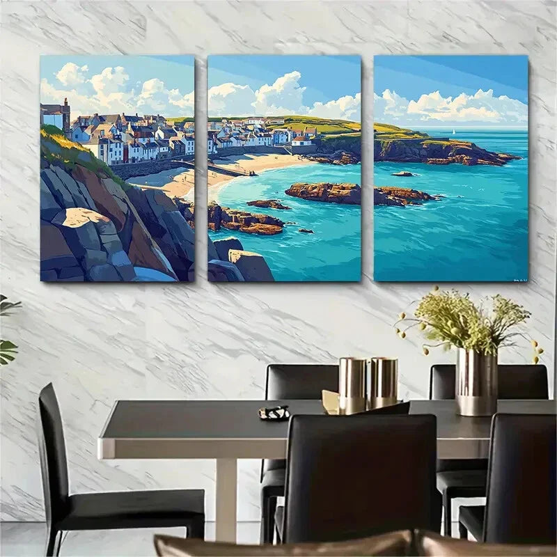 3pcs St Ives & Port Isaac Beach Scenery Blue Sky Metal Print Ready to Hang Art