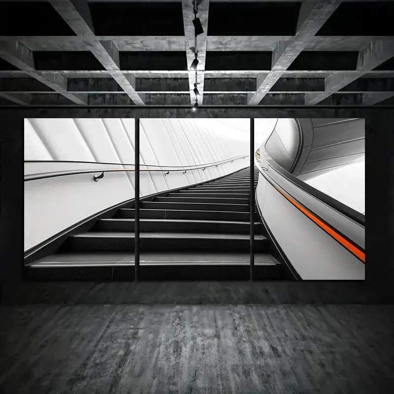 3pcs Staircase Abstract Contemporary Embossed Metal Print Ready to Hang Art