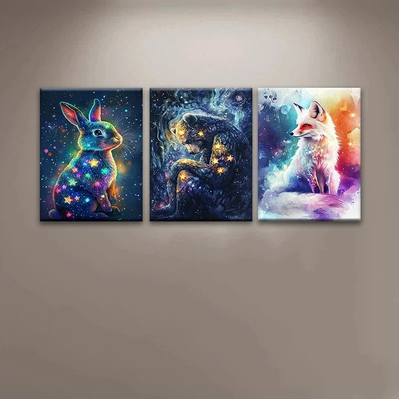 3pcs Starry Night Animal Galactic Rabbit Bear Metal Print Ready to Hang Art