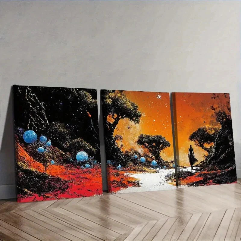 3pcs Strange Planet (1), Wall Art Set Canvas Framed 40x60cm - High Quality Print 100% Australian Made Wall Canvas Ready to Hang