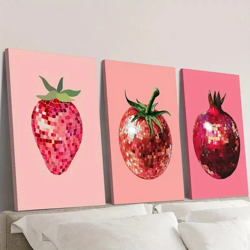 3pcs Strawberry, Tomato, Pomegranate Wall Art Set Canvas Framed 40x60cm - High Quality Print 100% Australian Made Wall Canvas Ready to Hang