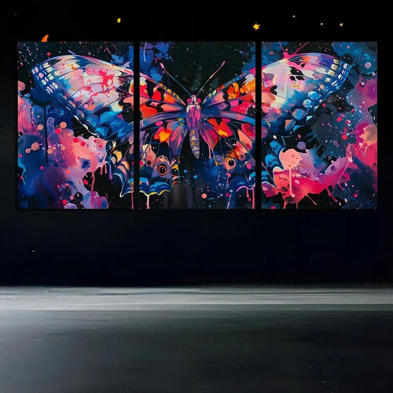 3pcs Stunning Rose Beautiful Butterfly Flowers Metal Print Ready to Hang Art