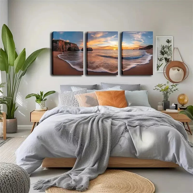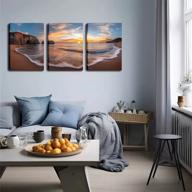 3pcs Stunning White Waves, Sea Level Sunset Wall Art Set Canvas Framed 40x60cm - High Quality Print 100% Australian Made Wall Canvas Ready to Hang