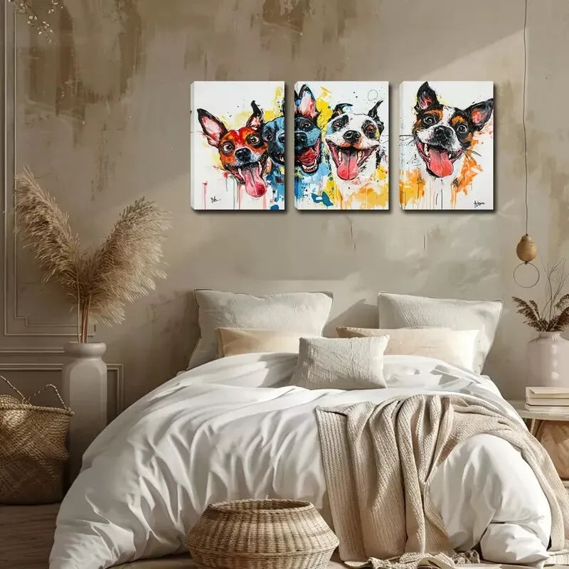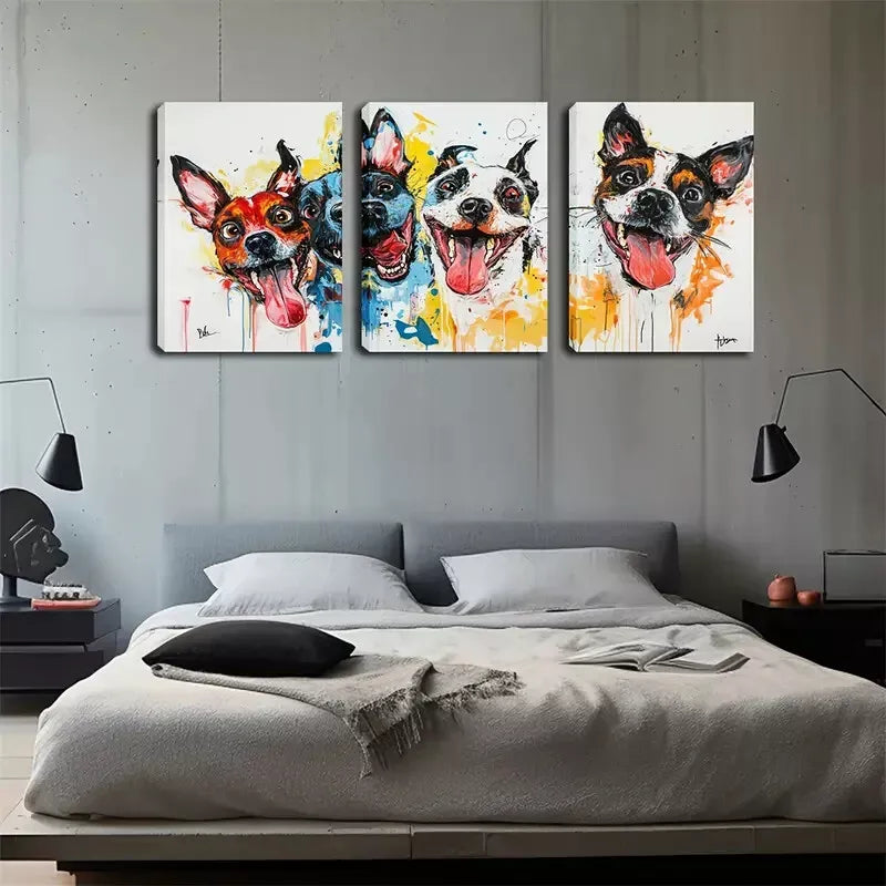 3pcs Four Cute Dog Heads Wall Art Set Canvas Framed 40x60cm - High Quality Print 100% Australian Made Wall Canvas Ready to Hang