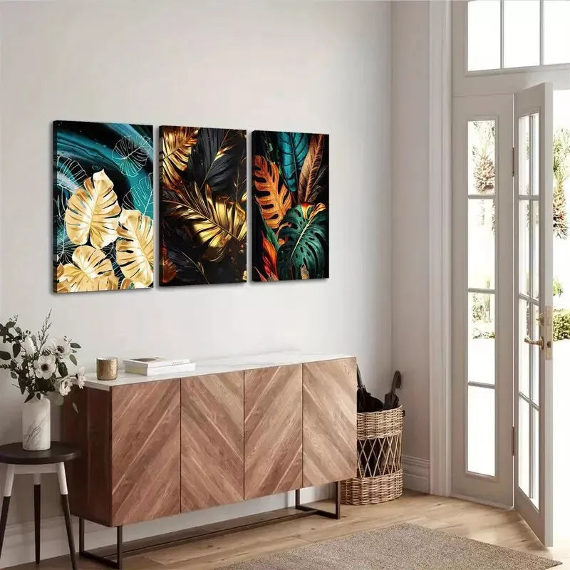 3pcs Stylish Black And Golden Feathers Leaves Wall Art Set Canvas Framed 40x60cm - High Quality Print 100% Australian Made Wall Canvas Ready to Hang