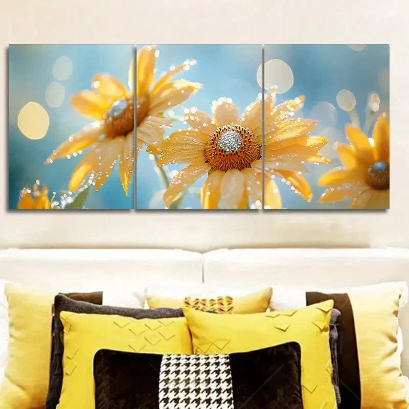 3pcs Sunflower Morning Dew Bubbles Metal Print Ready to Hang Art
