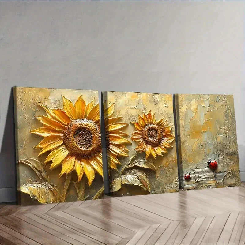 3pcs Sunflowers and ladybugs Wall Art Set Canvas Framed 40x60cm - High Quality Print 100% Australian Made Wall Canvas Ready to Hang